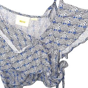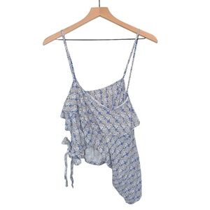 Tags: Anthro pineapple blue white summer one shoulder top ruffle thin straps shirt casual everyday spring vacation beach pool cruise trendy side tie coastal