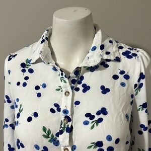 Anthropologie Maeve Blueberry Blithe Button Down Top White Blue Size 4
