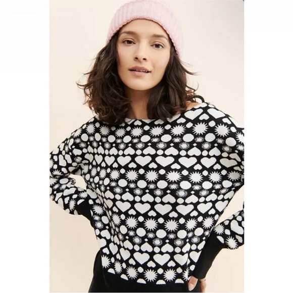 Anthropologie / Maeve Boatneck Sweater Hearts