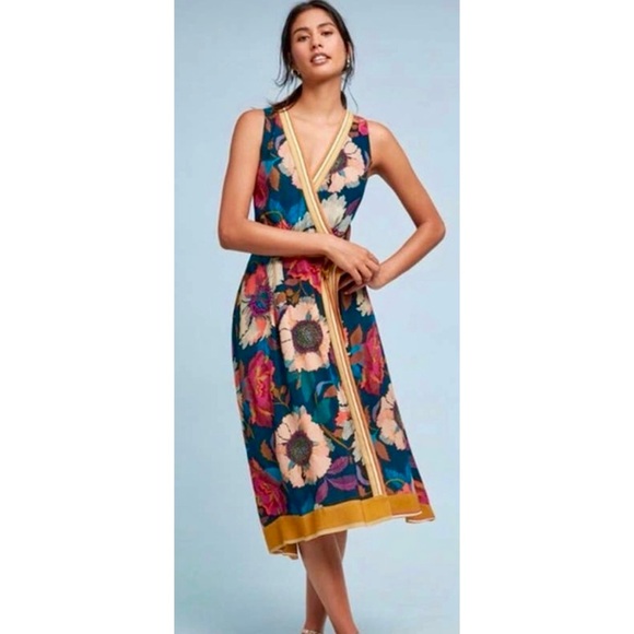 Anthropologie Maeve Botanica Floral Faux Wrap Dress~Size 2. In excellent condition. Has side zipper. Bust: 36” Waist: 26” Length: 42”