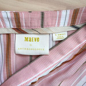 Anthropologie Maeve Brenda Peasant Top Blouse in Pink Stripes, Size XS