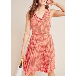 Anthropologie Maeve Brianne Cowl Neck Fit & Flare Dress Size Medium In Tangerine