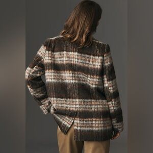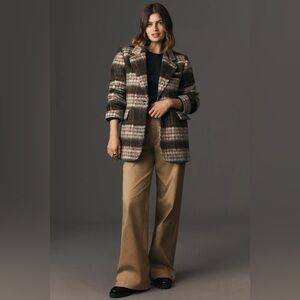 Anthropologie Maeve Brown Brushed Plaid Blazer sz L