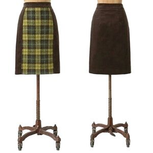 Anthropologie Maeve Brown Corduroy Green Plaid Wool Academia Skirt 2