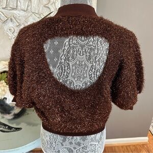 Anthropologie Maeve Brown Y2K Eyelash Knit Sweater, Size XXS