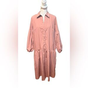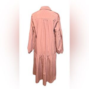 The Maeve Button-Front Poplin Dress is our favorite reason to get all dressed up! In a timeless pink color, this sophisticated number is styled with a collared V-neck, long balloon sleeves and elasticated cuffs. The relaxed-fit silhouette lends a flattering look and makes you look effortless, while the side-seam pockets let you keep your mini essentials right at hand. You can style it with a pair of heels or some ankle boots, depending on the look you want to create!