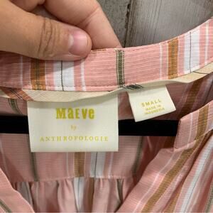Anthropologie Maeve Byron Pink Striped Blouse VNeck