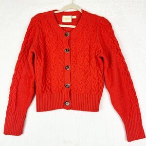 Anthropologie Maeve Cable Knit Cardigan Size Small Classic Timeless Red/Orange