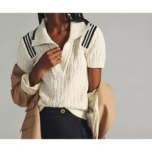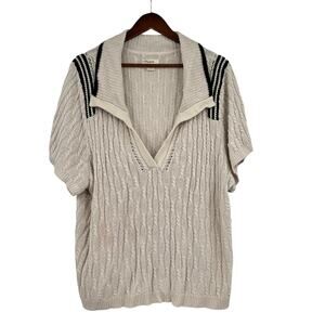 Anthropologie Maeve Cable Knit Polo short sleeve Sweater Tee linen plus size 3X