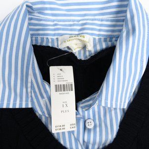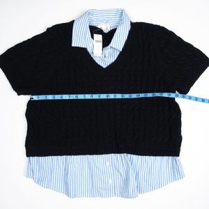 Anthropologie Maeve Cable Short-Sleeve Twofer Sweater Navy Blue 1X Plus
