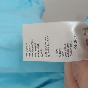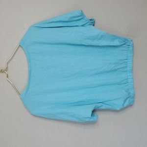 100% cotton. Puffed sleeves. Elastic waist. Pullover style.