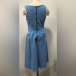 Sky blue and white print fit and flare dress. Back zip.