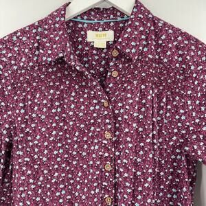 Anthropologie Maeve Calico Ditzy Floral Purple Button Down Shirt Blouse Size 4