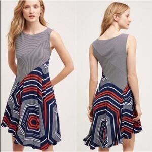 Anthropologie Maeve Cameron Navy Orange Dress Medium Petite
