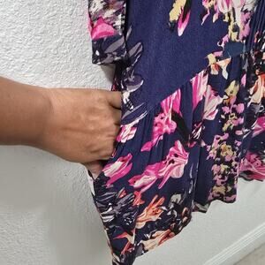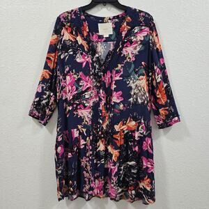 Anthropologie Maeve Caravane Boho Tunic Navy Floral V-Neck Drop Waist Sundress S