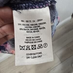 Embrace your bohemian spirit with the Anthropologie Maeve Caravane Tunic in a navy blue hue, adorned with a vibrant floral pattern that's perfect for any casual outing or your next travel adventure. The knee-length cut and alluring v-neckline complement the 3/4 sleeves, offering a blend of elegance and ease.