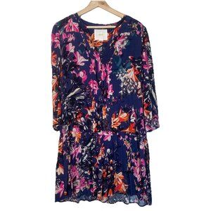 Anthropologie Maeve Caravane Dress Size Small Boho Tunic Navy Floral Drop Waist