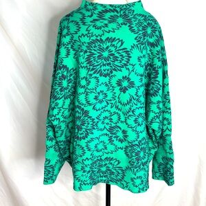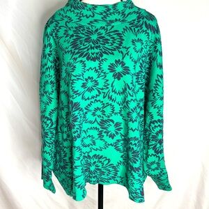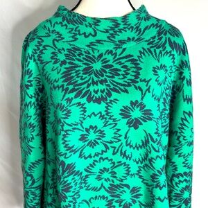 Anthropologie Maeve “Carys’ Women's Floral Mock Neck Sweater Green & Navy