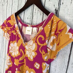 Anthropologie Maeve Catie Ruffle Sleeve Top Size M Bright Floral Orange Pink