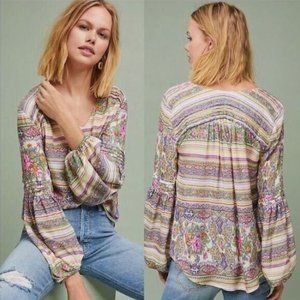 Anthropologie Maeve Ceresco Boho Floral Blouse Peasant Top Size 8 Petite