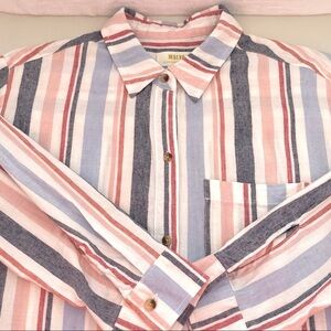 This top is preowned but in excellent used condition, gently worn. Size Small. Linen blend. Multicolored.