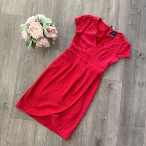 Anthropologie Maeve Cherry Red Splitshade Tulip Textured Dress