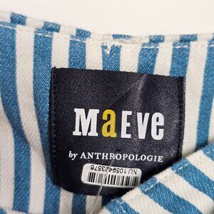 These Maeve by Anthropologie Collette wide-leg pants offer a classic blue and white striped design, ideal for a polished look. With a button closure and deep pockets, they ensure comfort without compromising on style. Perfect for a professional yet relaxed attire, these pants seamlessly blend fashion with functionality.