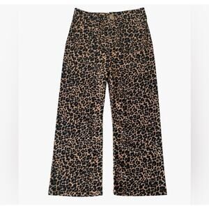 Anthropologie Maeve Colette Crop Wide Leg PONTE Pants Size 28 Brown Leopard Y18