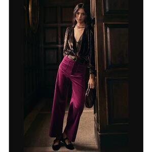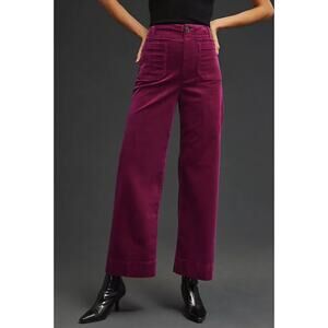 Anthropologie Maeve Colette Crop Wide Leg Corduroy Pants In Purple.