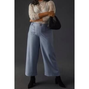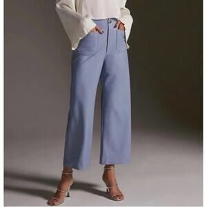 Anthropologie Maeve The Colette Hi-Rise Faux Vegan Leather Crop Wide Leg Trouser Pant in Blue. High waisted cropped trouser pant with front patch pockets. Zip fly and button closure. Like new condition.