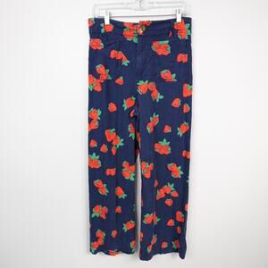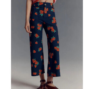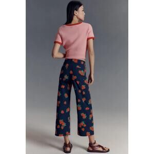 Anthropologie Maeve Colette Strawberry Navy Red Linen Crop Wide Leg Pants 29T