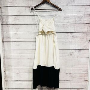 Anthropologie Maeve Colorblocked Contrast Midi Dress Smocked White Size Small