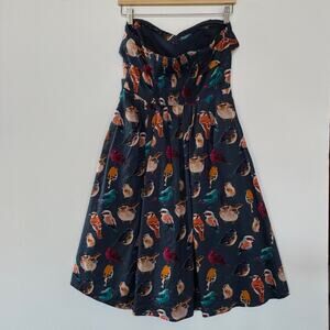 Anthropologie Maeve Colorful Strapless Bird Dress, Size 6