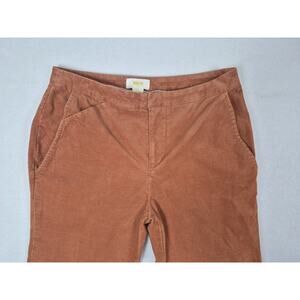 Chic and timeless Maeve by Anthropologie corduroy pants in a beautiful rust brown color. Crafted from soft stretch cotton corduroy for comfort and style. Features a mid/high rise, straight leg silhouette, and floral-print inner waistband.