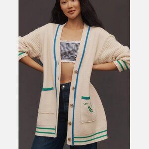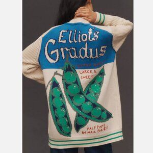 Anthropologie Maeve Cotton Blend Veggie Motif Graphic Cardigan Sweater L NWT