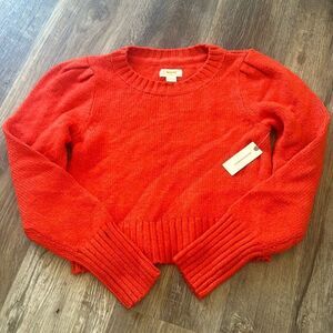 Anthropologie Maeve Crewneck Puff-Sleeve Sweater Women's Red Size Small NWT