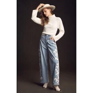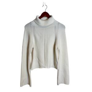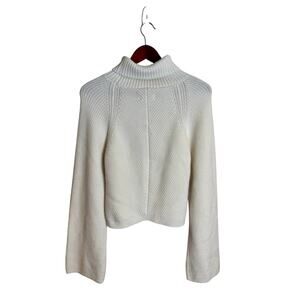 Anthropologie Maeve Cropped Knit Wool Blend White Turtleneck Sweater Medium