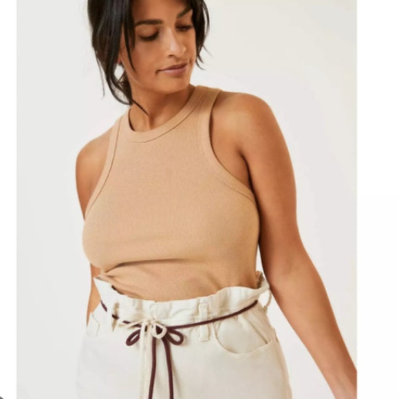 Anthropologie Maeve Cropped Racerback Tank Top in Tan - Large