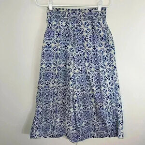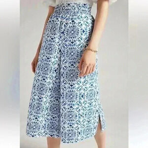 Anthropologie Maeve Cropped Wide-Leg Blue motif pants xs