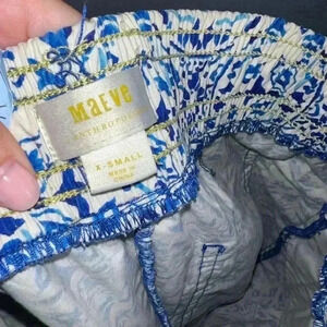 Anthropologie Maeve Cropped Wide-Leg Blue motif pants xs slight staining at waist