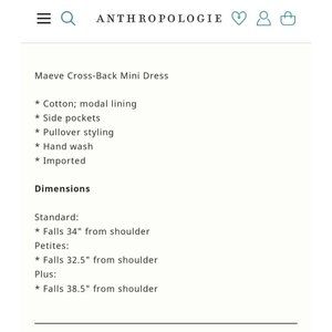Anthropologie Maeve Cross Back Mini Dress Blue New Size