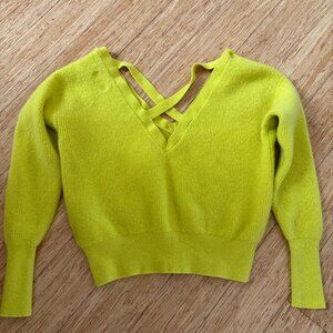 Anthropologie Maeve Cross-Back Cashmere Sweater Knit Chartreuse Size S 198$
