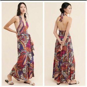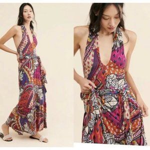 NEW Anthropologie Maeve Cynthia Printed Halter Maxi Dress Size XS.