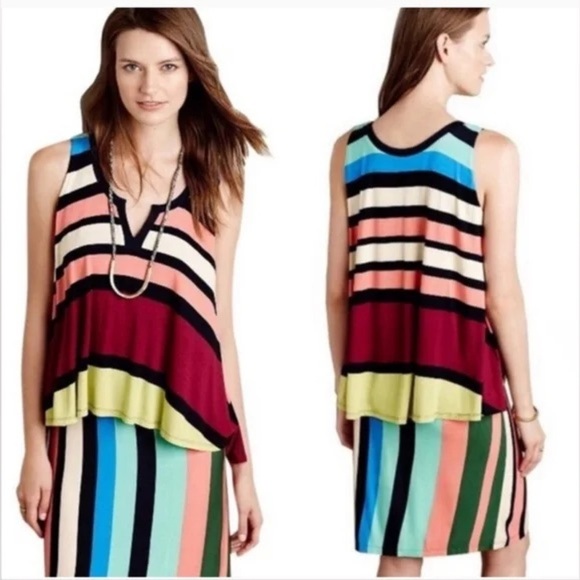 Anthropologie Maeve Davina Striped Overlay Dress Small