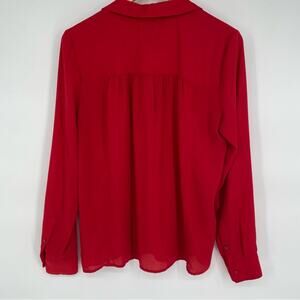 Anthropologie Maeve De Stijl Red V Neck Collared Button Front Blouse 8
