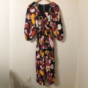 Anthropologie Maeve Deep V Ruched Midi Floral Dress - Size 2