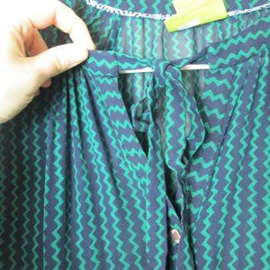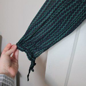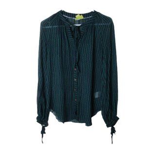 This is such a pretty Anthropologie Maeve Della Green & Navy sheer, bow tie blouse, Womens S