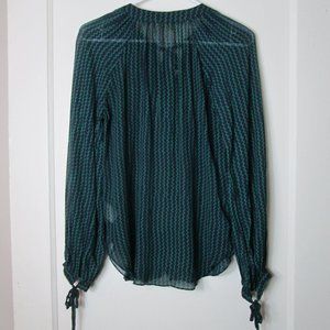 Anthropologie Maeve Della Green & Blue sheer blouse w/bow tie, Womens S, NICE!