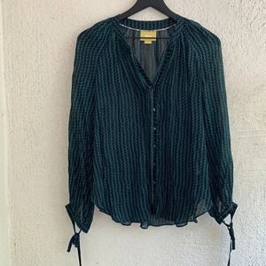 Anthropologie Maeve Della Sheer Shirt Blue Green Size Small