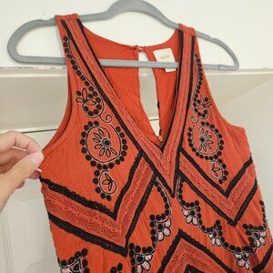 Anthropologie Maeve Desert Orange Wide Leg Embroidered Sleeveless Jumpsuit 0 Top